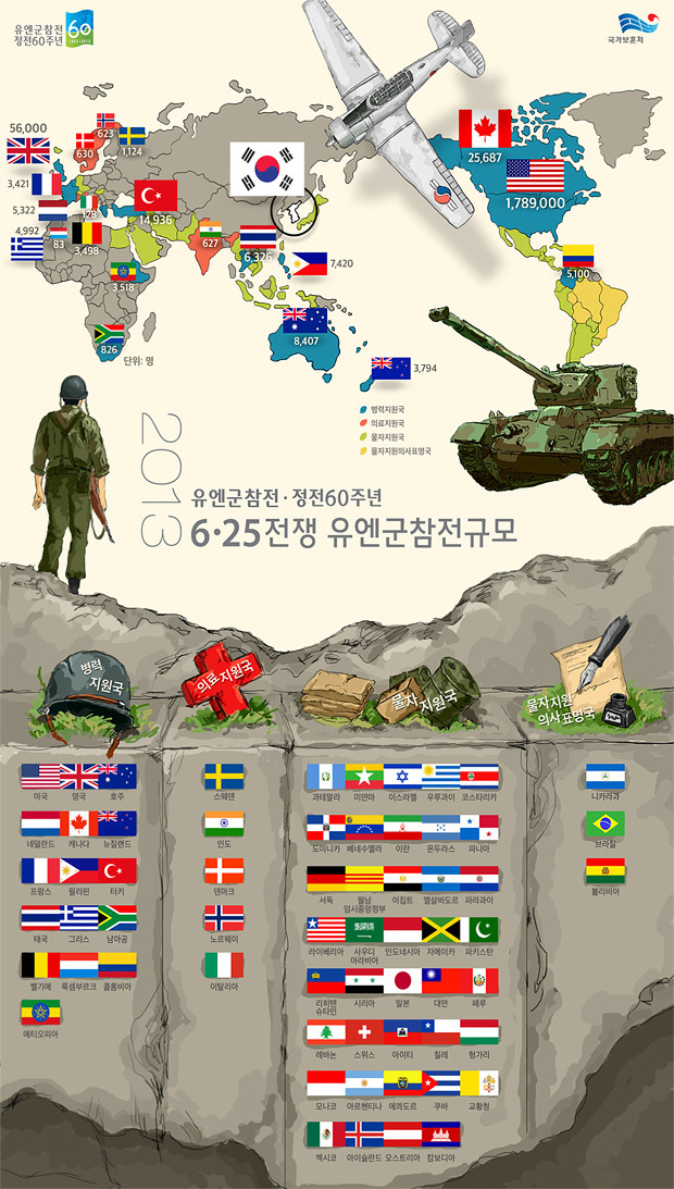 6.25전쟁은 역대 가장 많은 국가가 한 나라를 지원해준 전쟁이였다.